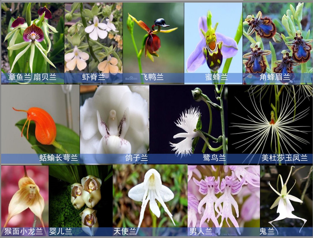 图12形态各异的兰花(图片来源:胡惠蓉老师讲座课件)