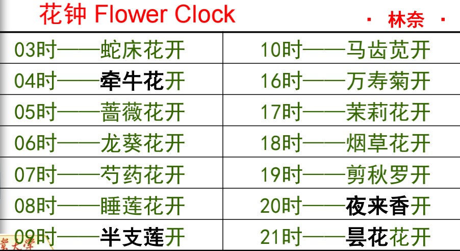 图14:林奈的花钟(图片来源:胡惠蓉老师讲座课件)